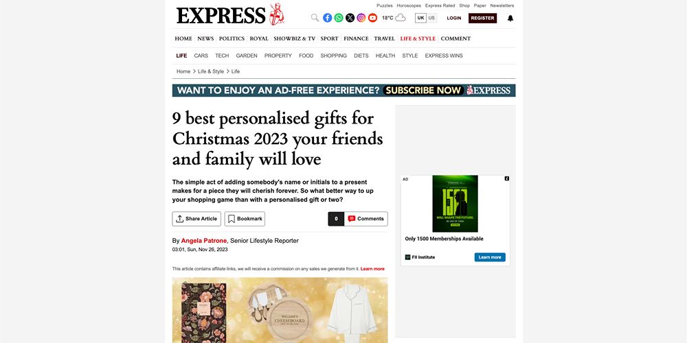 A curated gift marketplace specialising in unique and personalised presents for life’s special moments partnered with us in 2023 to unwrap their digital marketing potential and capture seasonal gifting traffic.